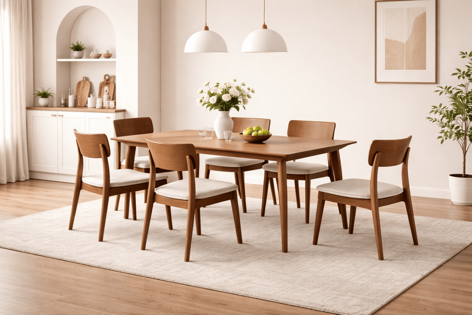 Wood Dining Table Set with Six Upholstered Chairs